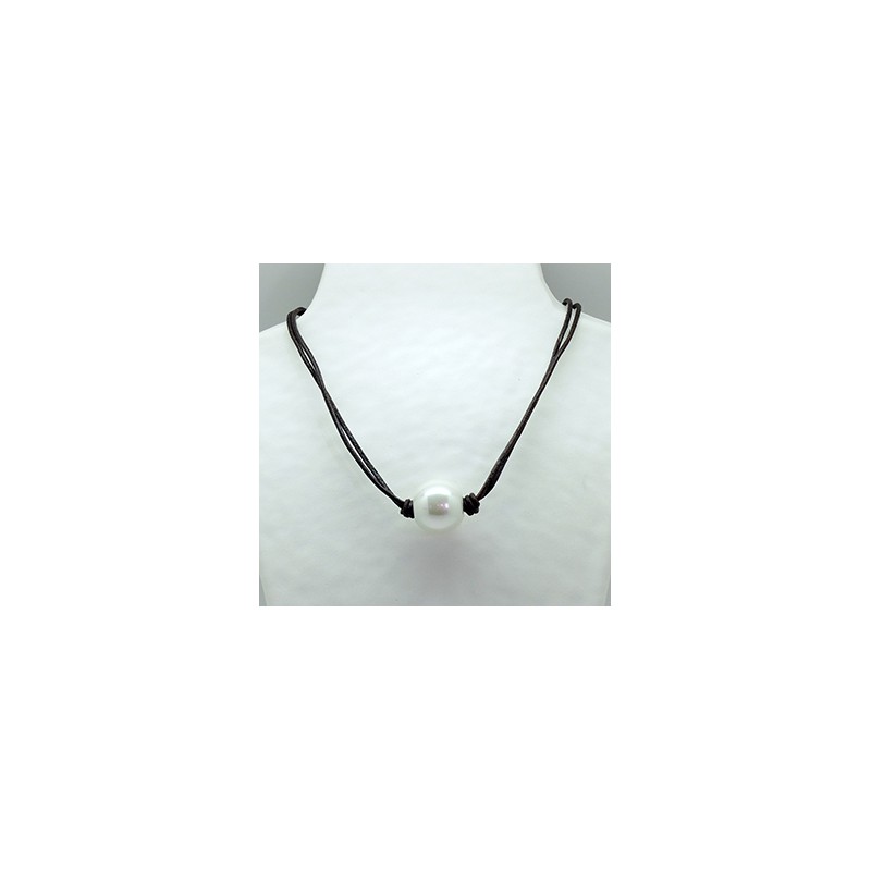 Collar Cordon Marrón + Centro Perla